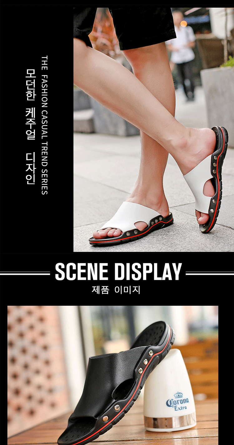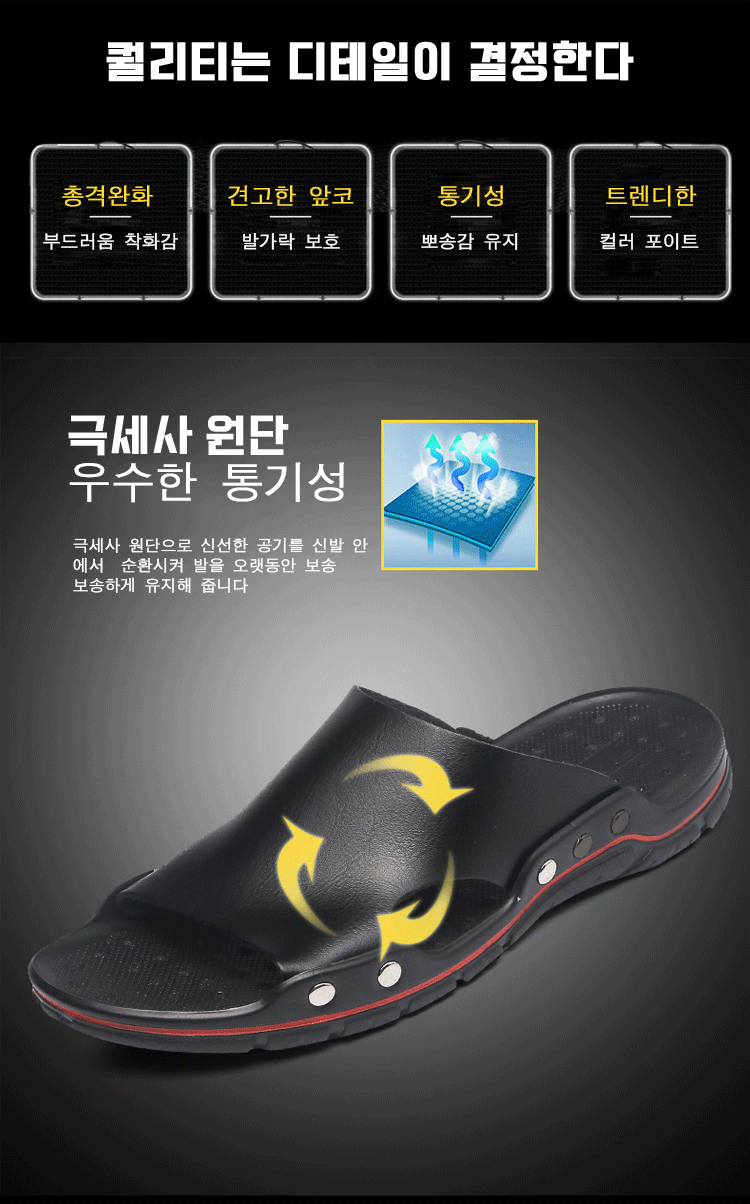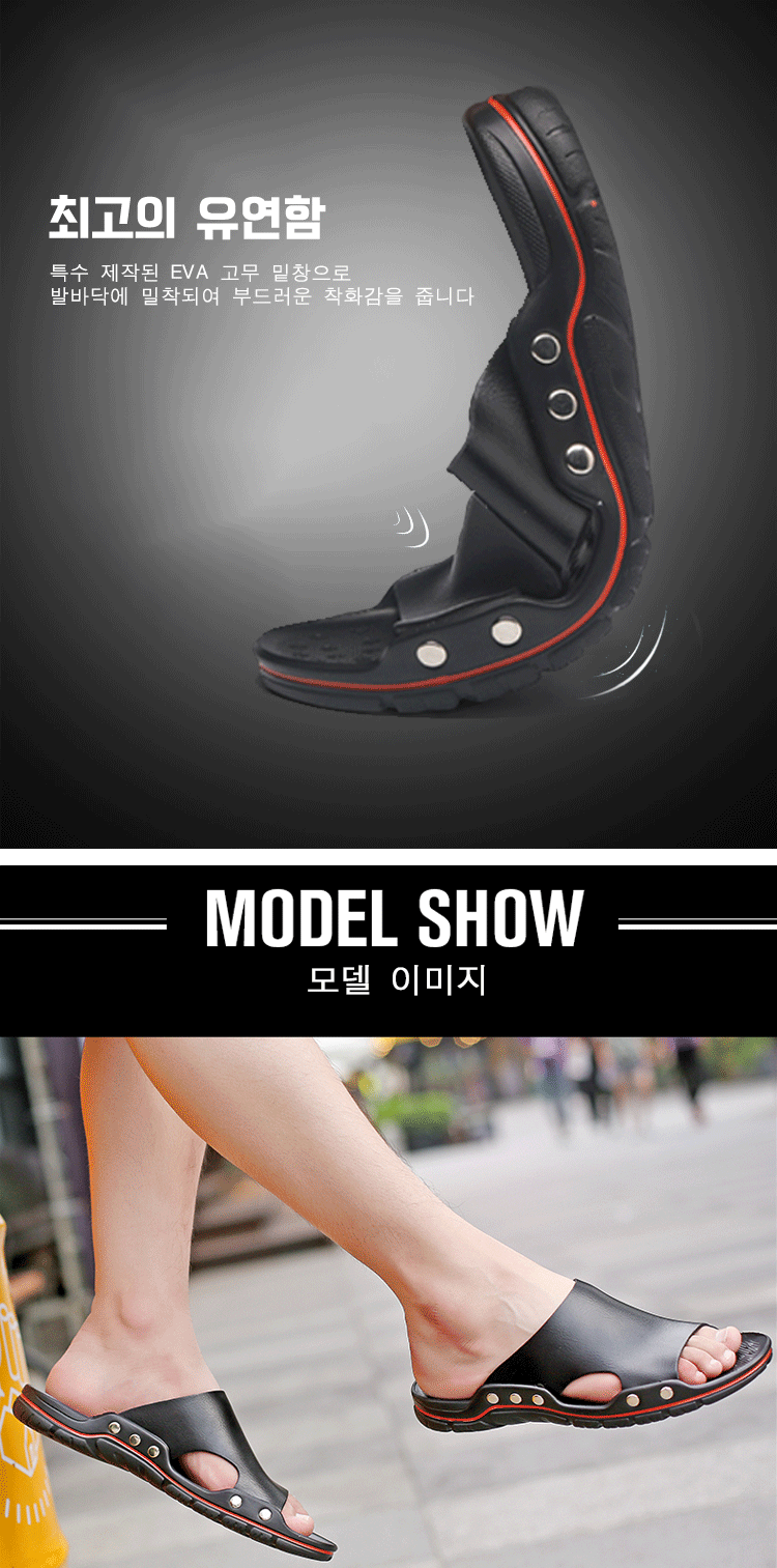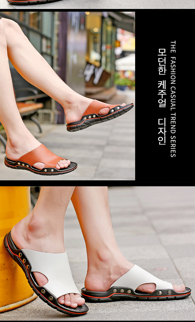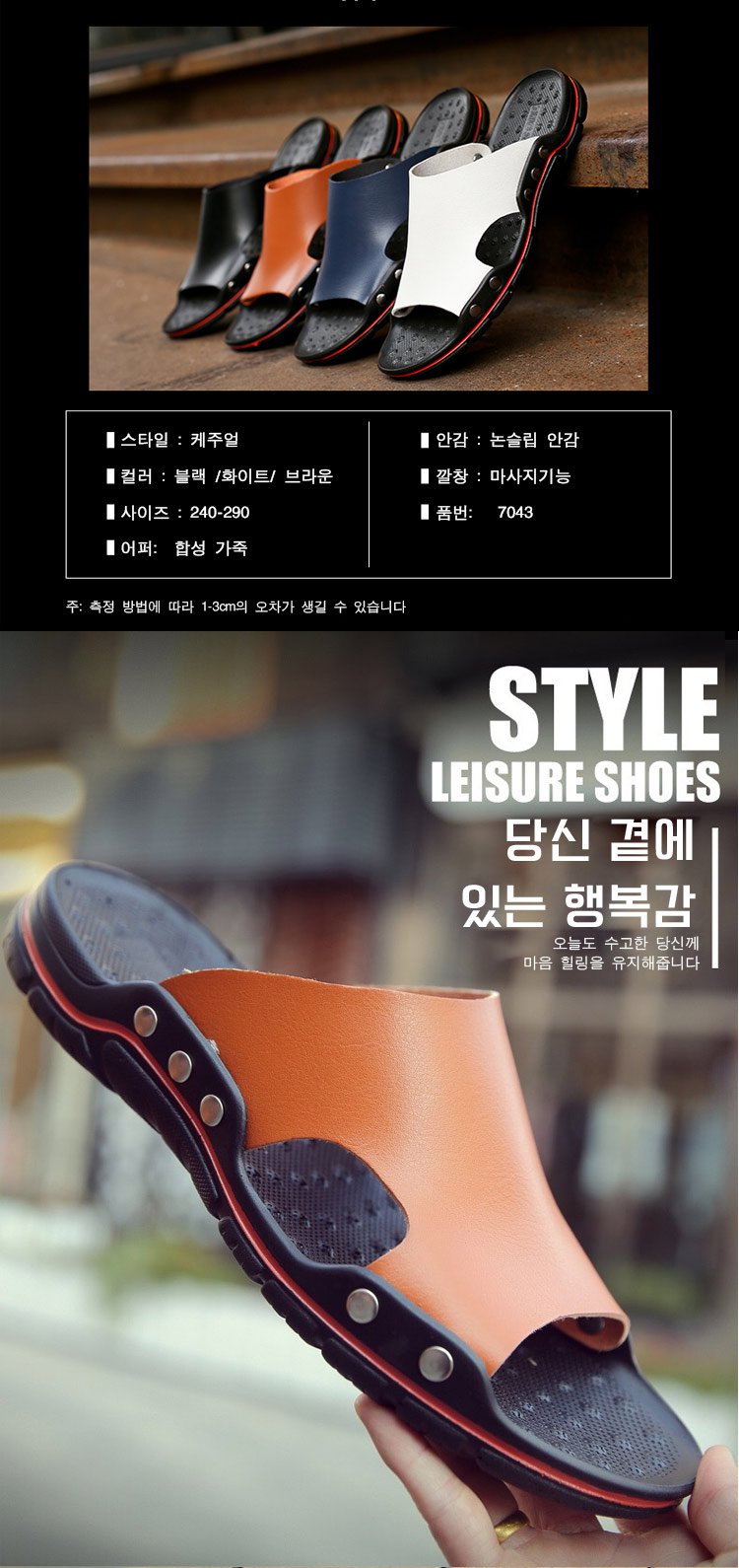 지압슬리퍼,발마사지 혈액순환, 여름 남성 가죽 슬리퍼, 부기 싹~